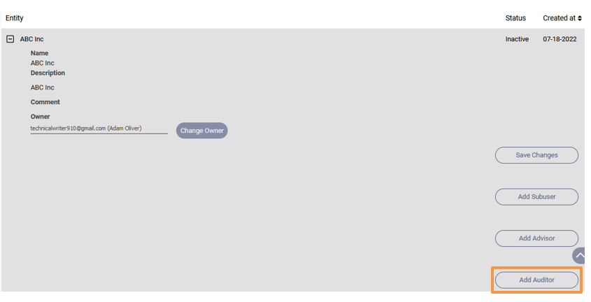 3. Click on Add Auditor.
