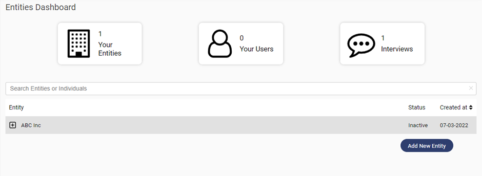 1.  Users can add entity details from the Entity Dashboard subsequently.