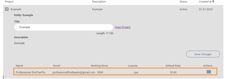 4. A professional who has been successfully hired for the project would be listed under the respective project.