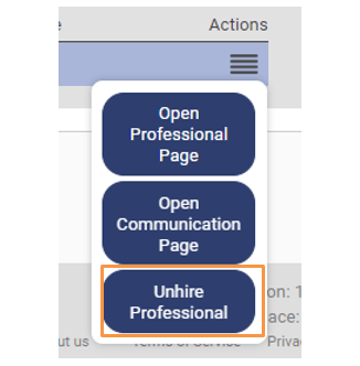 6. Users can Unhire a Professional by Clicking on the action button.