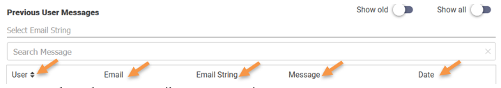 5. Users may sort the correspondence based on User, Email-ID, Email String, Message or based on the time of receipt of correspondence in ascending or descending order.