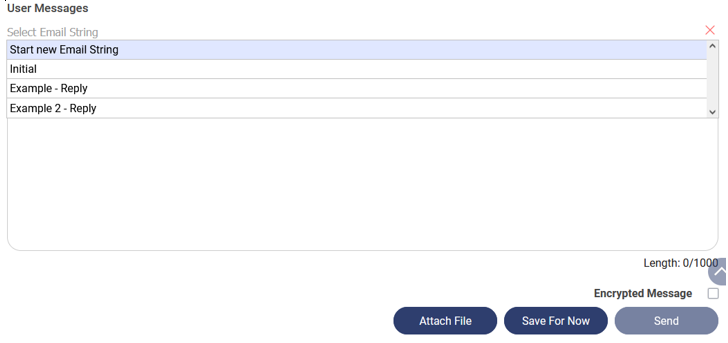 4. To start a new email string select “Start New Email String” from the drop-down list