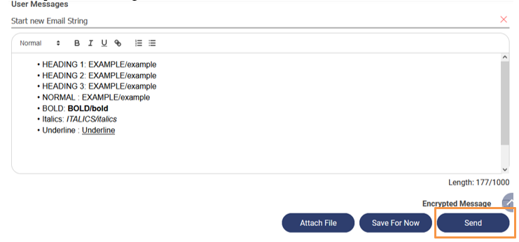 5. Users may use the text processing tools embedded within the text box to manage the message style according to the user’s needs