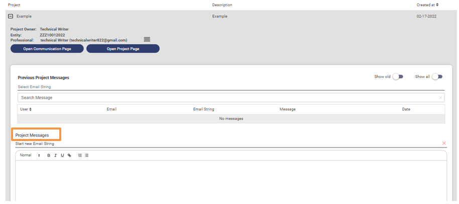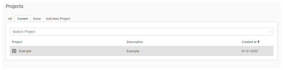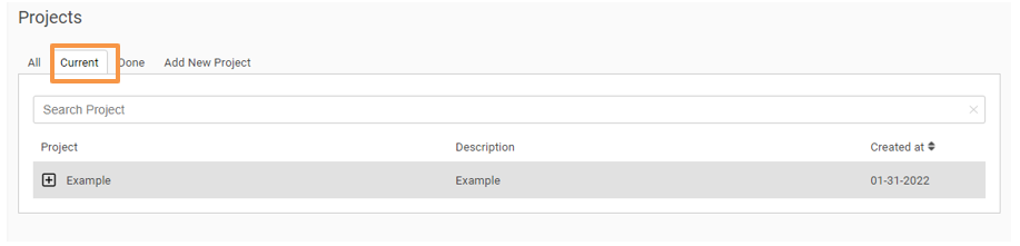 After a professional is hired by the user the project status can be viewed under Current Projects