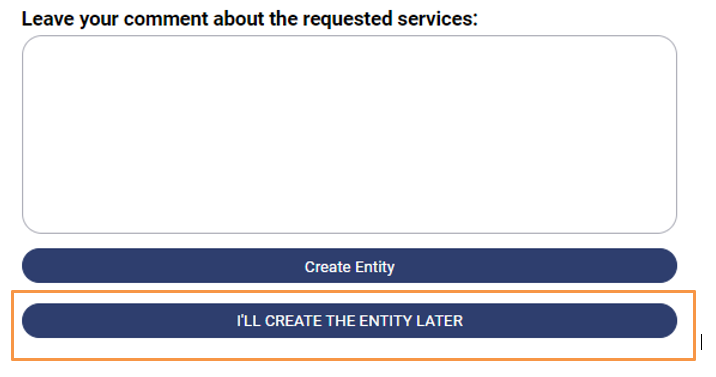 3. Enter a brief description of the services to provide us with a clear understanding of your business needs and proceed to “Create Entity”