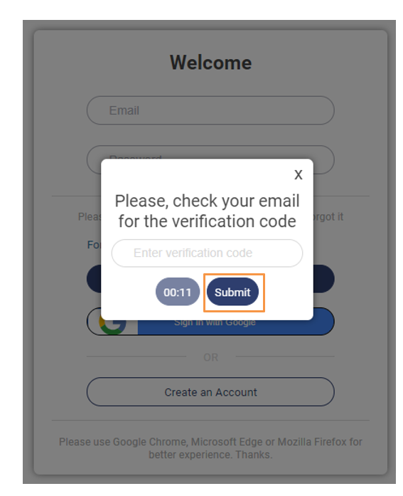 Proceed to enter the secondary verification code received in your registered email within a time frame of 30 seconds and submit the same.