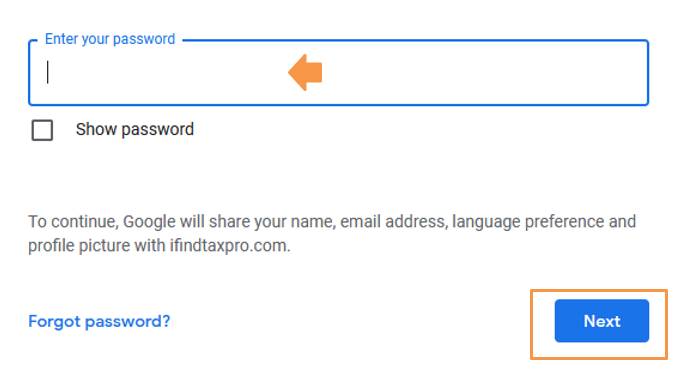 4. Enter your Password and proceed to “Next”