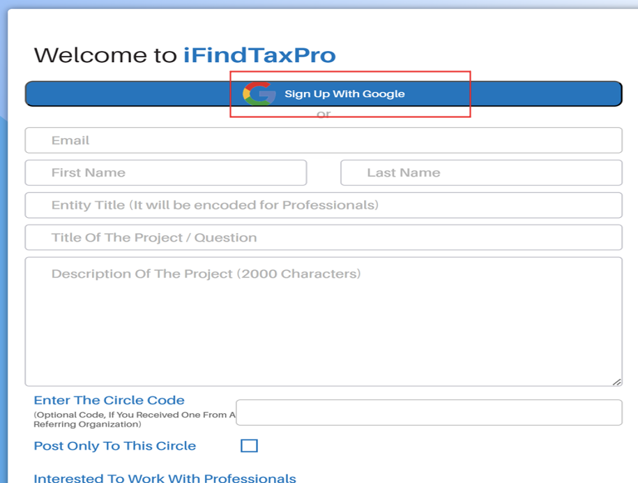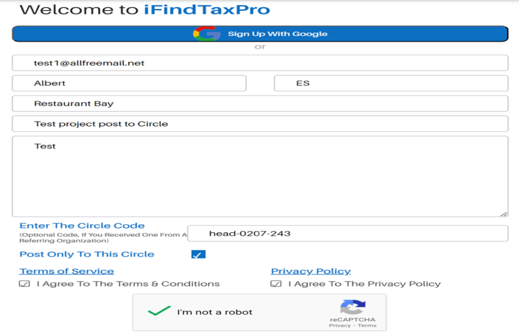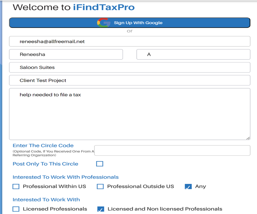 11. Post project to the given Circle while Client Sign-up :