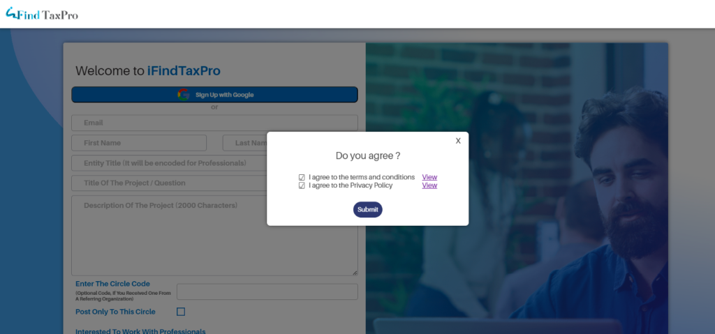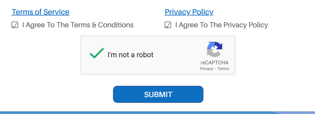 3. Click on Agree Terms of service and Privacy Policy. Click on submit