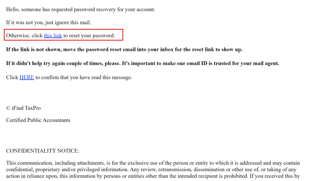 6. Click on password reset link from email: