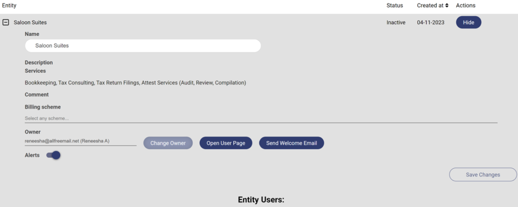 9. User can view the entity created after entering inside the application: