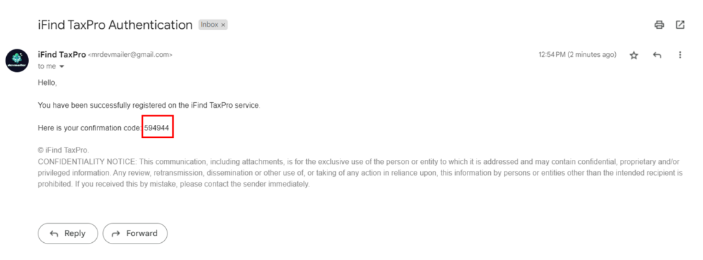 3. Users receive an email notification saying they have been successfully registered and their confirmation code.