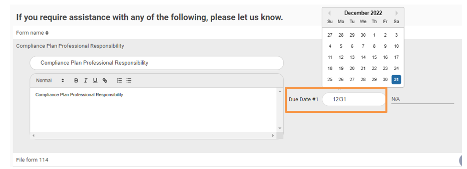 Once Compliance Plan has been put together, the client and professional will start receiving email notifications well in advance to notify you when it has an upcoming due date.