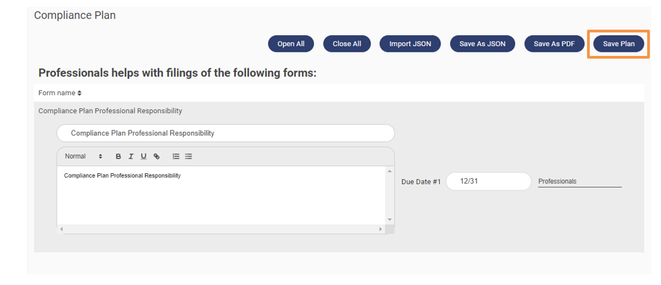 Once the Initial Interview has been completed, Professionals will be able to begin setting up Compliance Plan.