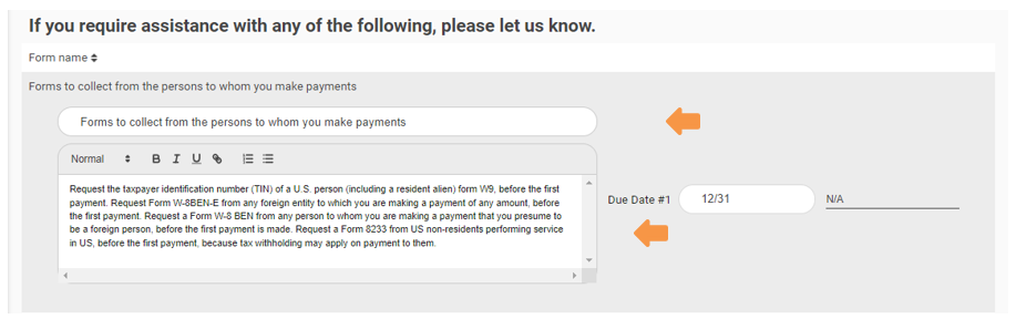 2. If a Professional feels that the Compliance Title & Description needs to be customized according to his/her preference can do so by editing the Text Fields provided.