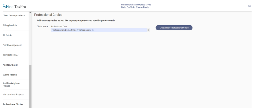 3. Select “Professionals Demo Circle “ and click on “Save “